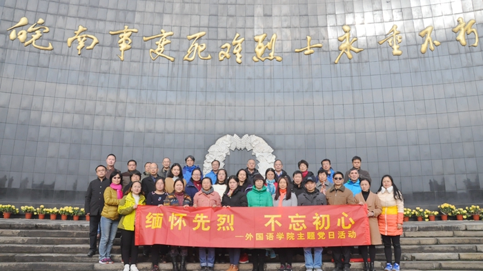 在全校上下学习宣传贯彻党的十九大精神之际,12月1日-2日,外国语学院党委组织学院教工党员,前往安徽省宣城市泾县皖南事变旧址开展“学习贯彻党的十九大精神”主题党日活动,重温入党誓词,开展爱国主义教育和党风廉政主题教育。